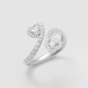 white gold and heart shaped diamonds by-pass ring