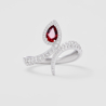 white gold with diamonds and pear shaped ruby ring
