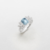 anello fantasia in oro bianco con acquamarina taglio ottagonale e gambo incassato con diamanti taglio brillante