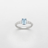 anello in oro bianco con acquamarina taglio ottagonale e gambo sgriffato di diamanti taglio brillante