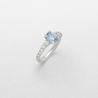 anello in oro bianco, diamanti e acquamarina