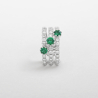anello a 3 file in oro bianco con smeraldi centrali, contorno e gambo incassati con diamanti taglio brillante