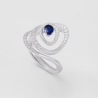 anello spirale in oro bianco con zaffiro centrale taglio ovale e diamanti taglio brillante