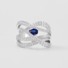 anello multifili in oro bianco con zaffiro centrale taglio goccia e diamanti taglio brillante