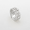 anello a 3 file in oro bianco con diamanti centrali taglio brillante, contorno e gambo incassati con diamanti taglio brillante