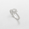 anello contorno in oro bianco con diamante centrale taglio brillante, contorno e gambo con diamanti taglio brillante