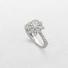 anello contorno in oro bianco con diamante centrale taglio brillante, contorno e gambo con diamanti taglio brillante