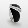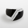 anello fascia bombata contrarié collezione Toujours Ensemble in oro bianco, onice e diamanti taglio brillante