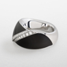 anello fascia contrarié collezione Fleur de Nuit in oro bianco, onice e diamanti taglio brillante