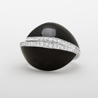 anello bombato collezione Ma Fleur in oro bianco, onice e diamanti taglio brillante