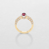 anello solitario in oro bianco e rosa e rubino centrale taglio ovale con contorno e gambo di brillanti incassati a pavè