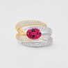 anello a 4 file in oro bianco e rosa con tormalina rosa centrale taglio ovale e pavé di diamanti taglio brillante