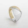 anello fascia contrarié collezione Fleur de Nuit in oro rosa e bianco e diamanti taglio brillante